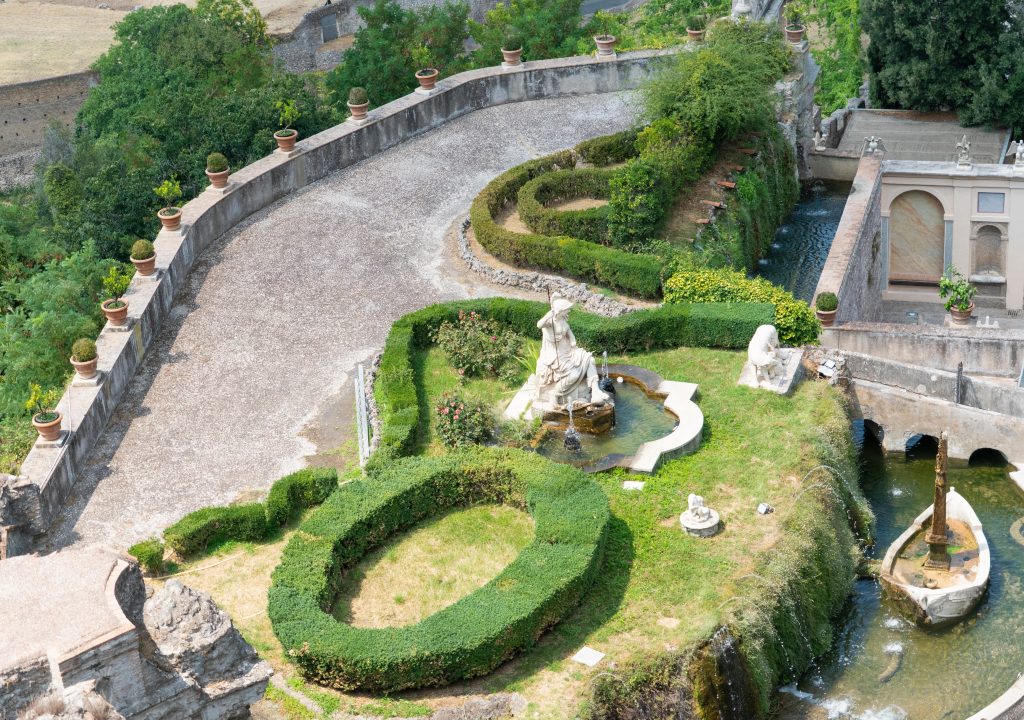 Il giardino con le sue fontane costituisce un capolavoro di ingegneria idraulica, sia per la costruzione dell’impianto, ma anche per i particolari giochi d’acqua e la complessità della loro automazione. L’acqua che alimenta le fontane di Villa d’Este e ancora quella del fiume Aniene, attraverso un canale sotterraneo di 600 metri.Per tutti questi motivi Villa d’Este può essere definita un vero e proprio trionfo di fontane.